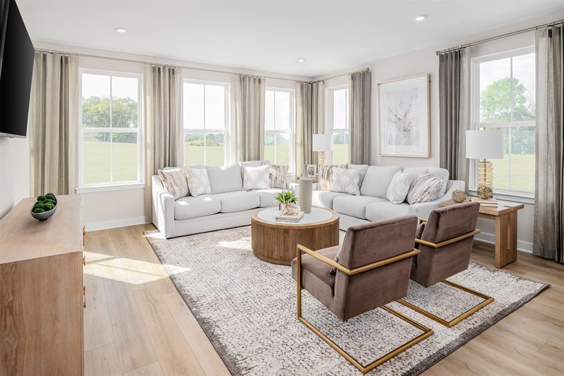 The Sonata offers a two-car garage townhome design with abundant style and space. On the ground level, the finished rec room can be converted into a convenient first-floor guest suite. Follow the wide staircase to the main level where entertaining is easy thanks to the light-filled kitchen and dining space, which adjoin the impressive great room. Upstairs, the top level features a full bath and convenient laundry with two spacious bedrooms for family and friends. Inside your luxury primary suite, you’ll find two stunning walk-in closets and a dual vanity bath. Come home to The Sonata.