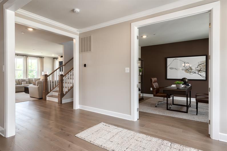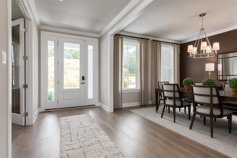 The Monaco defines single-family luxury. Enter this two-car garage home through the foyer, framed on either side by a formal dining room and versatile flex space. The inviting family room seamlessly flows into the gourmet kitchen and infinity island. Work from home in a quiet first-floor study and take breaks on the optional covered porch. Upstairs, three private bedrooms all have a walk-in closet and access to a full bath. In your stunning owner’s suite, enjoy two walk-in closets, a sitting area and a spa-like, dual vanity bath. Finish the lower level for more living space in The Monaco.