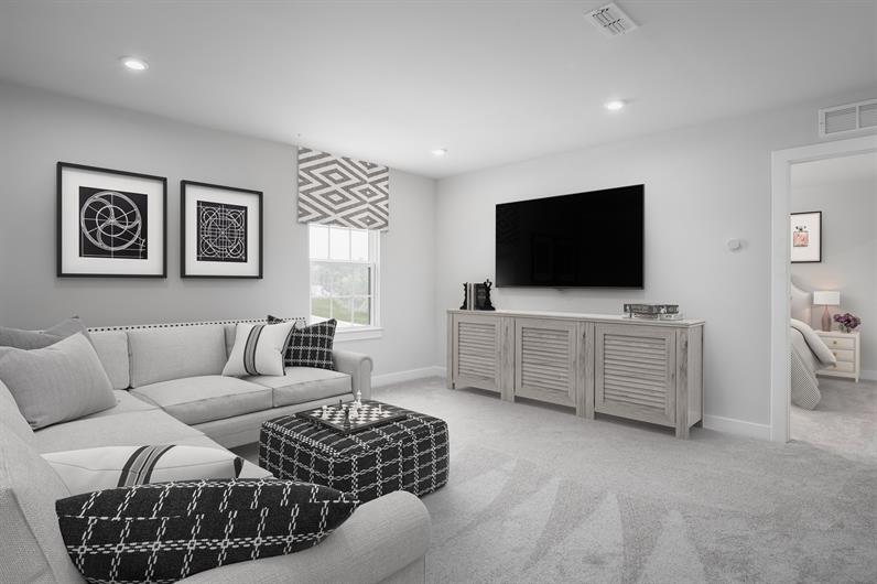 The Anderson is astonishing. An optional full front porch makes a statement and invites you into the foyer and flex space, which can be used as a study, office and more. The stunning family room adjoins your gourmet kitchen and overlooks the whole level, including the dining area and rear porch. Beyond the pantry, the laundry connects to a 2-car garage. Your luxury owner’s suite completes the main floor with a dual vanity bath and walk-in closet. Upstairs, two bedrooms, a full bath and large loft offer more comfort and living space. Finish the basement to unlock the Anderson’s full potential.