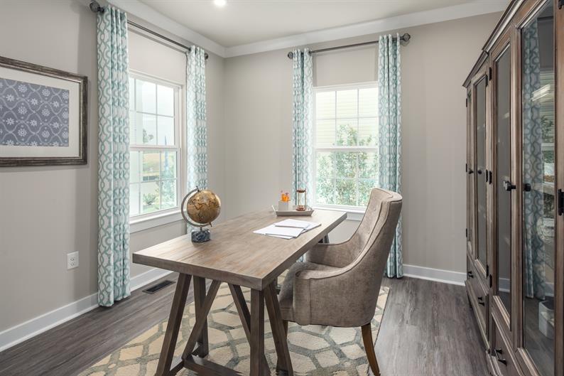 Not too big, not too small. The Ballenger is just right with the ideal amount of space that delivers on flexibility. Enter through the covered porch into a flex room – you decide how it functions. A huge modern island in the kitchen flows neatly into the dining area and family room. Upstairs, the owner’s bedroom offers two separate closets. Choose four bedrooms or turn one into a loft. For even more space, finish the basement with another bedroom and a wet bar in select areas.