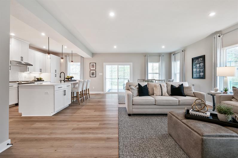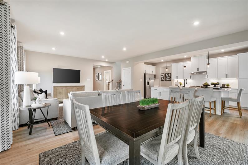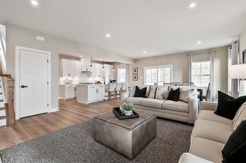 The Hudson single-family home fits the way you live. Flex space can be used as a playroom, a library and more. Gather in the spacious family room, which flows into the dining room and gourmet kitchen, separated by a convenient breakfast bar. Off the 2-car garage, a family entry controls clutter, while a quiet study is tucked away. Upstairs, 3 bedrooms offer abundant closet space and a full bath provides privacy. Your luxurious owner's bath will stun with its double bowl vanity and huge walk-in closet. Finish the basement level for extra living space. Come home to The Hudson.