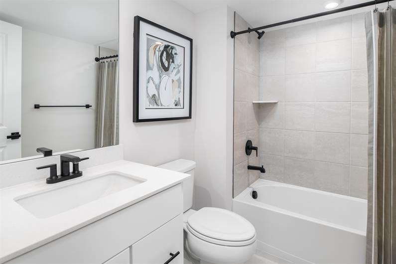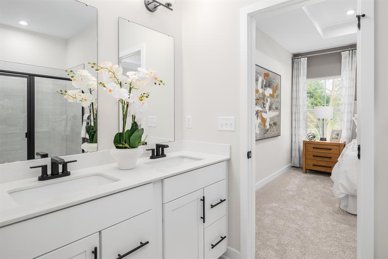 The Sonata offers a two-car garage townhome design with abundant style and space. On the ground level, the finished rec room can be converted into a convenient first-floor guest suite. Follow the wide staircase to the main level where entertaining is easy thanks to the light-filled kitchen and dining space, which adjoin the impressive great room. Upstairs, the top level features a full bath and convenient laundry with two spacious bedrooms for family and friends. Inside your luxury primary suite, you’ll find two stunning walk-in closets and a dual vanity bath. Come home to The Sonata.