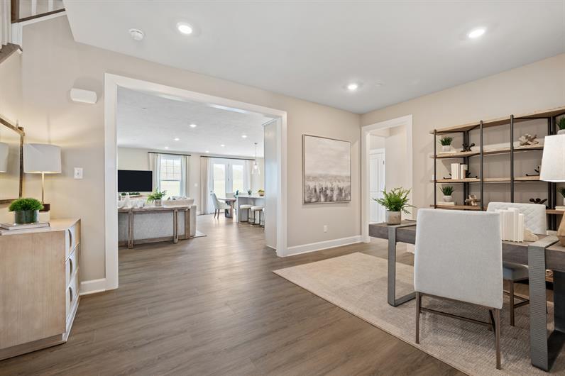 The Northshire grand townhome has all the space and style you’d expect from a single-family home. Enter to the first level and be greeted by an open and airy flex room, perfect for formal dining; or choose the study for work-from-home ease. The gourmet kitchen is open to the great room and a casual dining space. A family arrival center sits just off the 2-car garage. Upstairs, a cozy loft leads to 2 bedrooms and a full bath. Your luxurious owner's suite is a private retreat and boasts a spa-like bath and huge walk-in closet. Finish the basement level and enjoy all The Northshire has to offer.